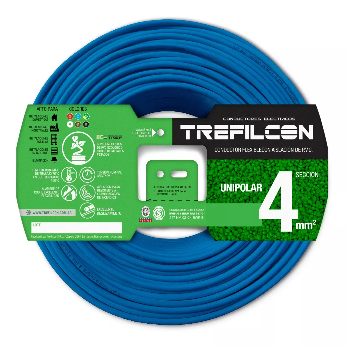 Cable Unipolar 1x4mm Normalizado Trefilcon X 100 Metros Color de la cubierta Celeste