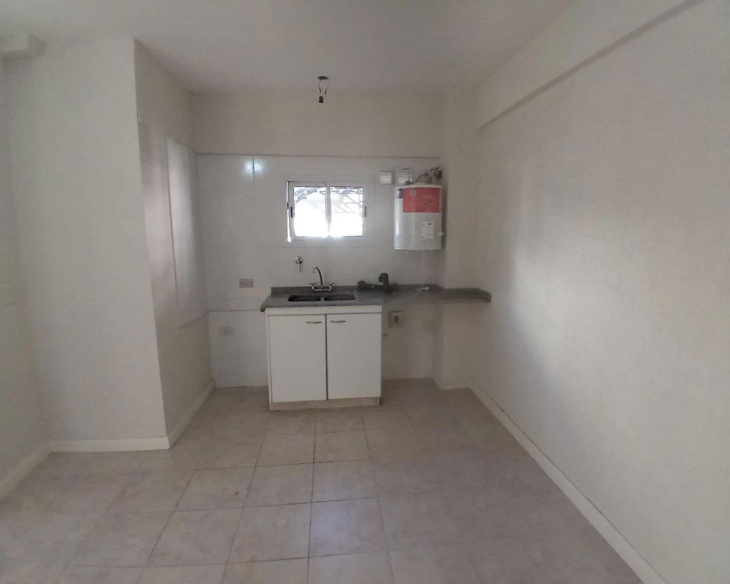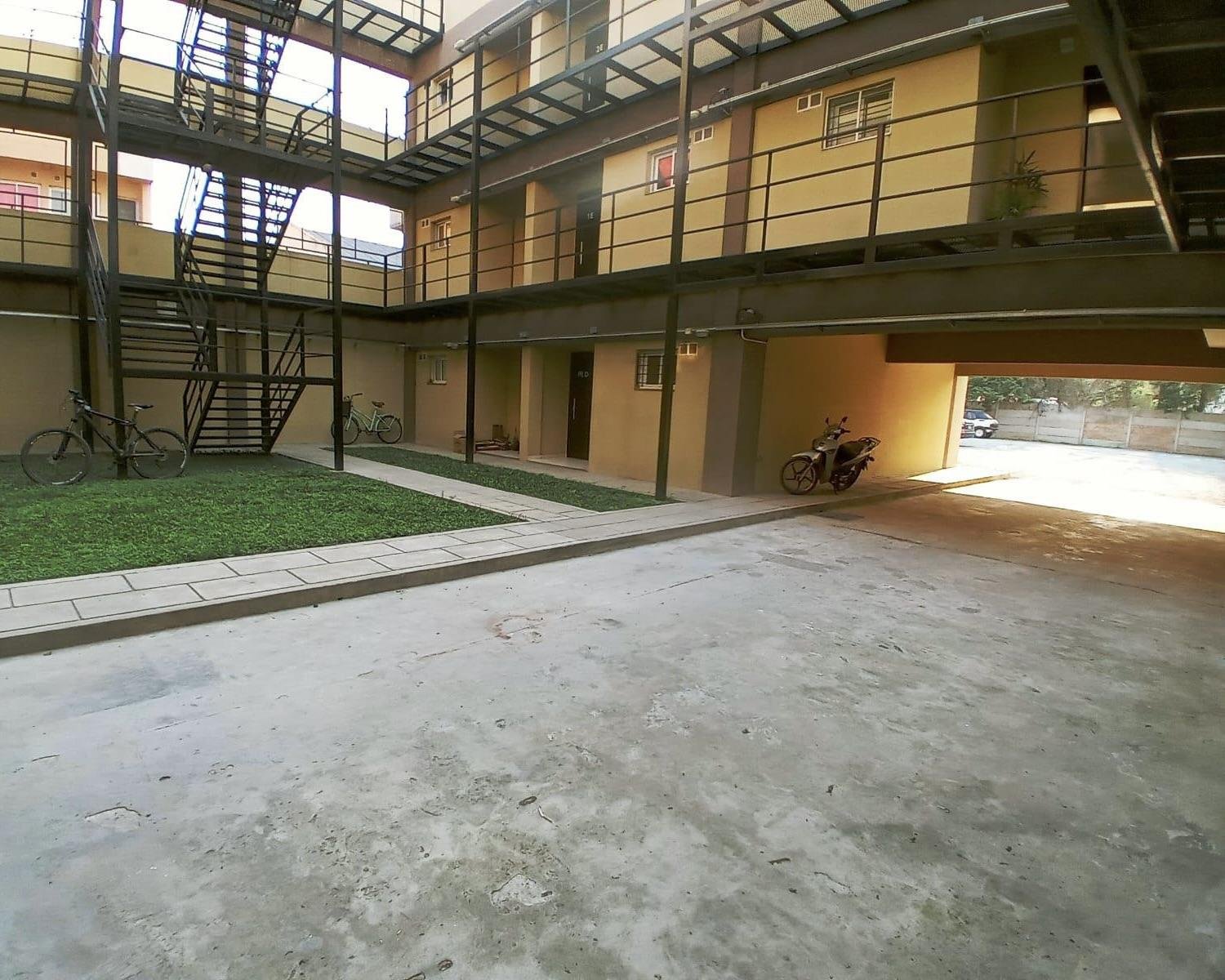 Departamento en el centro de Pilar, por escalera, se entrego y estreno hace 6 meses. El departamento es 2 ambientes, 1 dormitorio, baño completo y cocina integrada al living comedor, tiene 42 m2 totales con el balcón, termo tanque y cocina con gas natura. El edificio no cuenta con ascensor, tiene terraza, todos los servicios. Cochera descubierta. Bajas expensas de $7.000 aproximadamente.