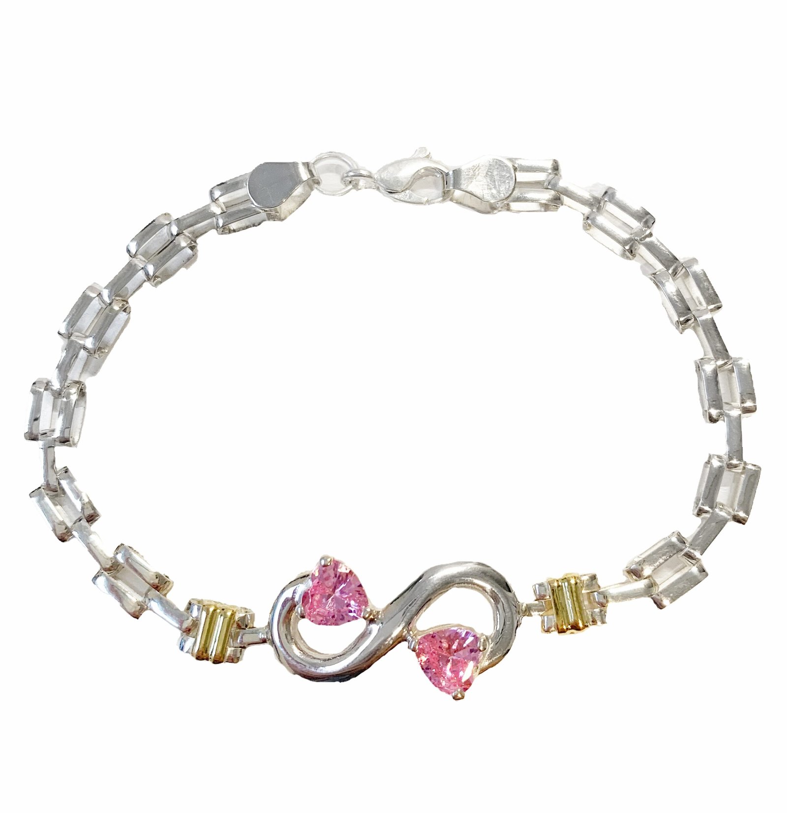 Pulsera en plata y oro con centro infinito y detalle de piedras media 17 cm