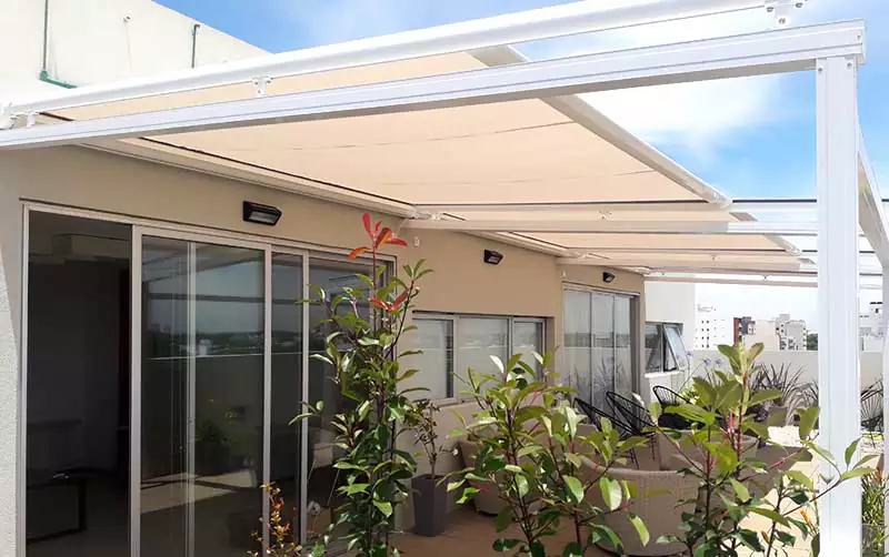 Este sistema es nuevo en el sector de toldos. Su exclusivo sistema de guías permite tensar su lona dejando un estilo diferente a su techo de vidrio y pérgola, siendo así un diseño innovador.